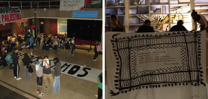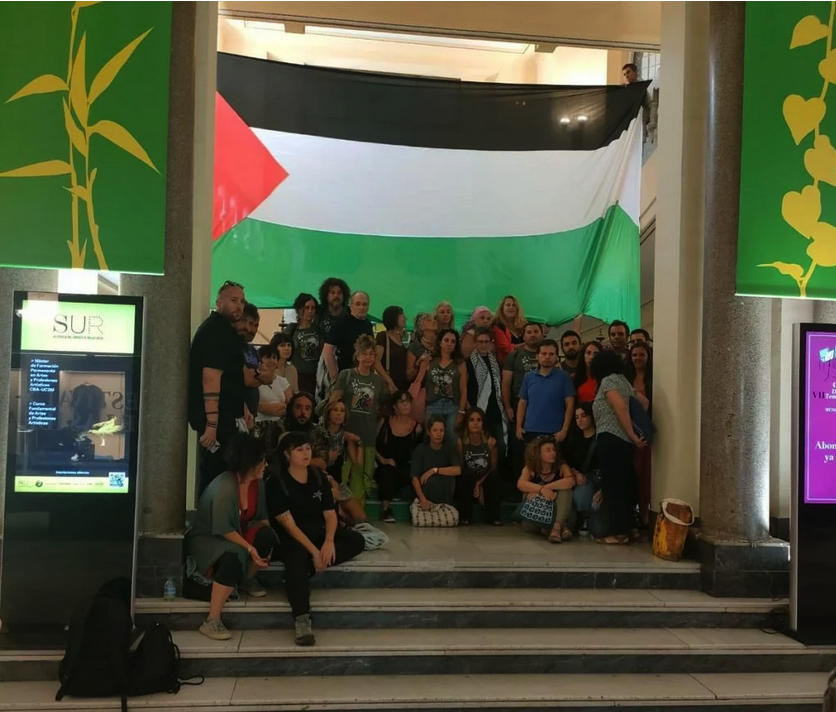 Coincidiendo con las movilizaciones contra la vuelta, el 2 de de septiembre un grupo de docentes, pertenecientes al colectivo Marea Palestina (educación contra el genocidio) se encerró en el Círculo de Bellas Artes, bajo el lema “No es normal empezar el curso con normalidad”, para exigir al Gobierno que se aprobara el embargo de armas (y su tránsito) a Israel, la ruptura de relaciones comerciales y diplomáticas y la evacuación de los ciudadanos palestinos con familiares en España. Interpelaron específicamente a los ministros de su ámbito profesional, es decir, los de Educación (PSOE), Cultura (Sumar) y Juventud e Infancia (Sumar), los cuales por lo general les han ignorado.