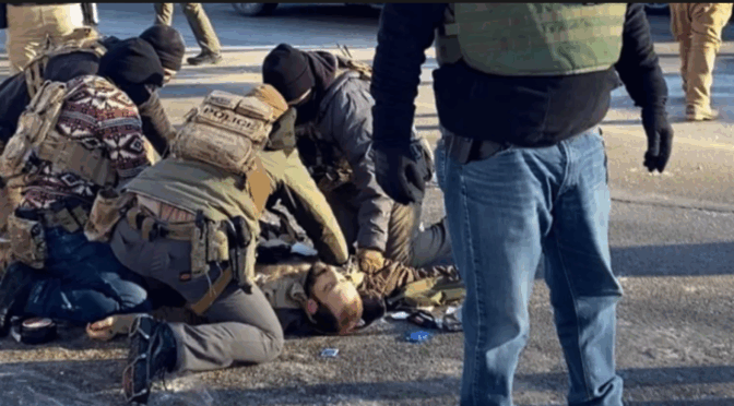 Finalmente, otros dos grupos brindaron apoyo y un bloqueo humano en una calle lateral. Desafortunadamente, los alguaciles realizaron dos arrestos allí durante un avance agresivo hacia el «túnel» fortificado. Según informes, lanzaron bolas de nieve a los vehículos federales, rompiendo una ventana. ICE contra ICE.