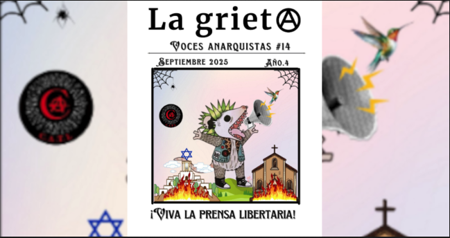 También compartimos con ustedes la parte 6 de la traducción de Anarco-Negritud: “Notas Hacia un Anarquismo Negro”, el poema “La Locura”, “Algunas reflexiones en torno a la flotilla Global Sumud y la solidaridad internacional por Palestina”, Aporofobia multidireccional, una explosión en Iztapalapa” y las ilustraciones combativas de Dkdenz.
