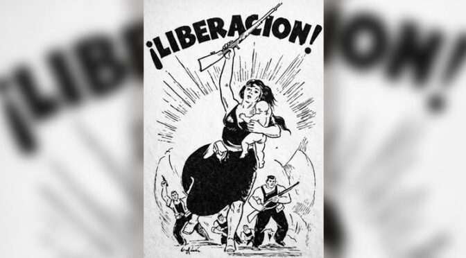 - La imagen que acompaña mi escrito también es irritante: el ilustrador consideró oportuno en plena revolución (la imagen es del periódico CNT, 1936) que las mujeres se liberaban con su criatura en brazos. El contraste con los compañeros que van detrás es muy explícito. ↩︎